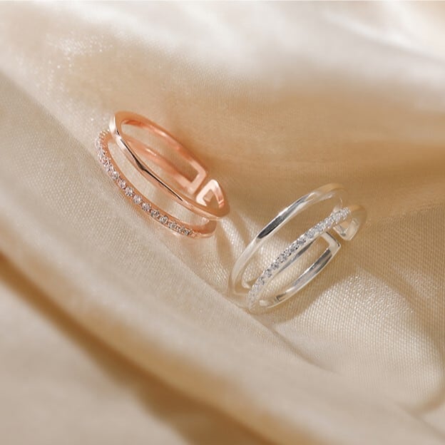 重なり合う2本のラインが指先に繊細で優雅なアクセントを加えます。