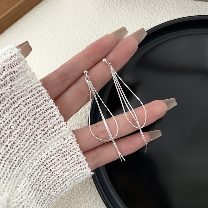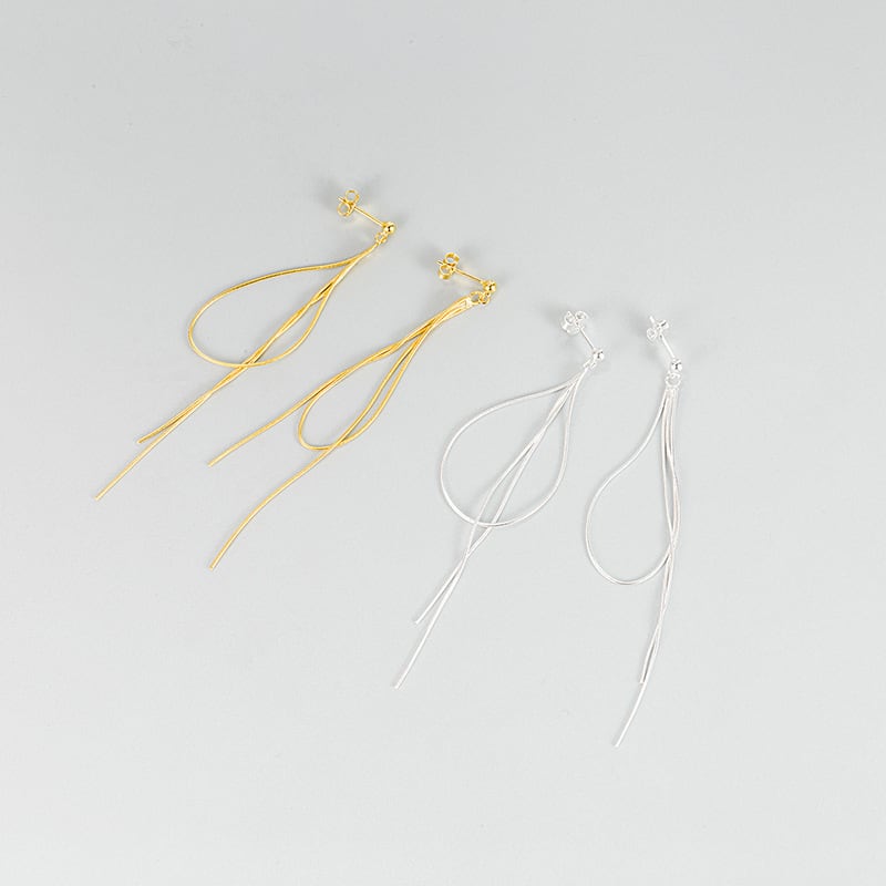 しなやかなスネークチェーンが揺れ動き、耳元に洗練された印象を与えます。