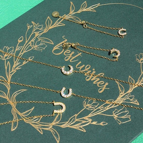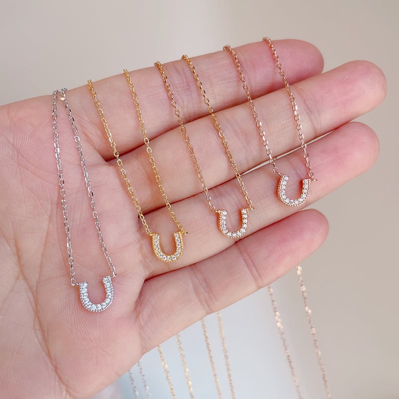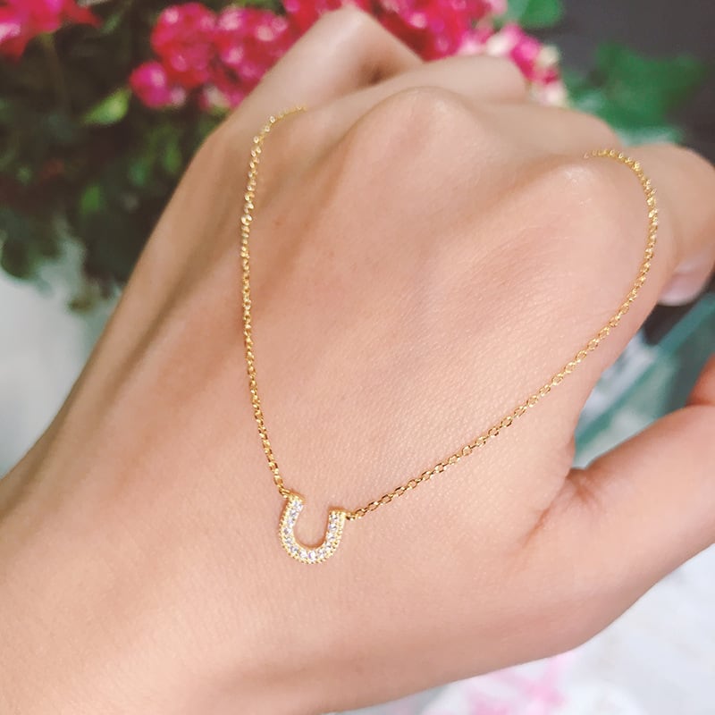 滑らかなチェーンが馬蹄モチーフを引き立て、首元に優雅な印象を与えます。