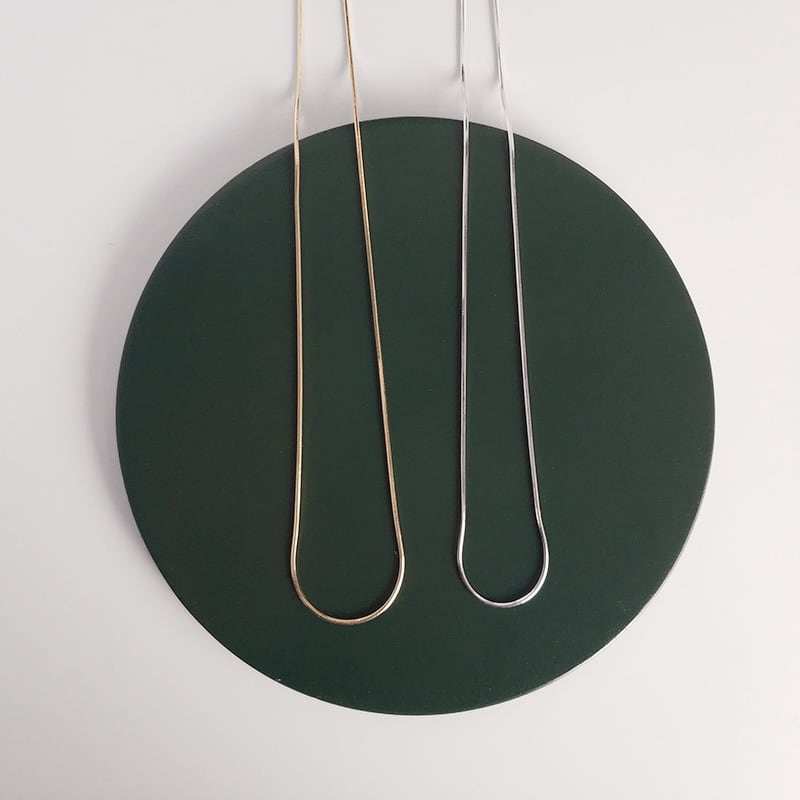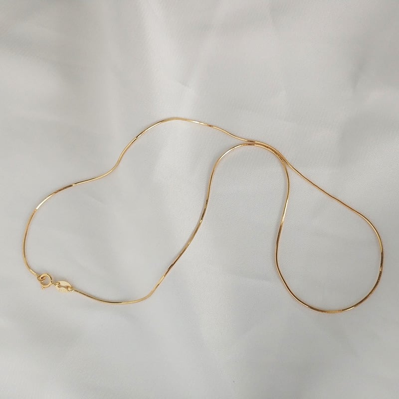 極細のスネークチェーンが繊細な輝きを放ち、シンプルでありながらエレガントな雰囲気を演出。どんなスタイルにもマッチする万能なネックレスです。